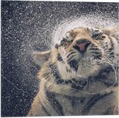WallClassics - Drapeau - Shaking Wet Tiger - 50x50 cm Photo sur Drapeau Polyester