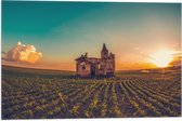 WallClassics - Drapeau - Vieux Kasteel à la Campagne avec Coucher de Soleil - 50x50 cm Photo sur Drapeau Polyester