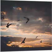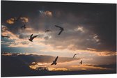 WallClassics - Drapeau - Vogels dans le ciel au coucher du soleil - 100x75 cm Photo sur Drapeau Polyester