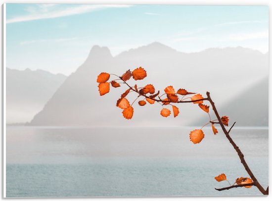WallClassics - Feuille de Mousse PVC - Feuilles d' Oranje sur Branche pour Montagnes - 40x30 cm Photo sur Feuille de Mousse PVC