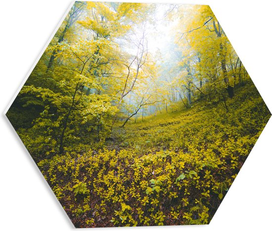WallClassics - Feuille de mousse PVC Hexagone - Colline envahie par la forêt - 40x34,8 cm Photo sur Hexagone (avec système de suspension)