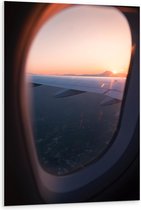 WallClassics - Feuille de Mousse PVC - Vue d'une Fenêtre d'Avion sur Terre au Coucher du Soleil - Photo 70x105 cm sur Feuille de Mousse PVC (Avec Système d'accrochage)