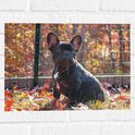 WallClassics - Muursticker - Bouledogue français dans les feuilles d'automne - 40x30 cm Photo sur Muursticker