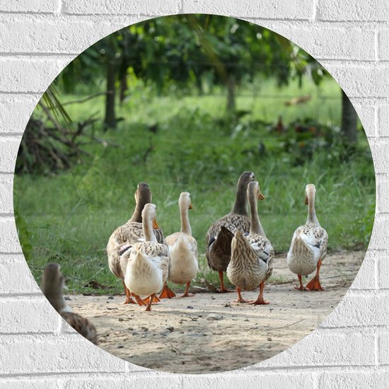 WallClassics - Muursticker Cercle - Canards se dandinant - 70x70 cm Photo sur Muursticker