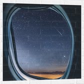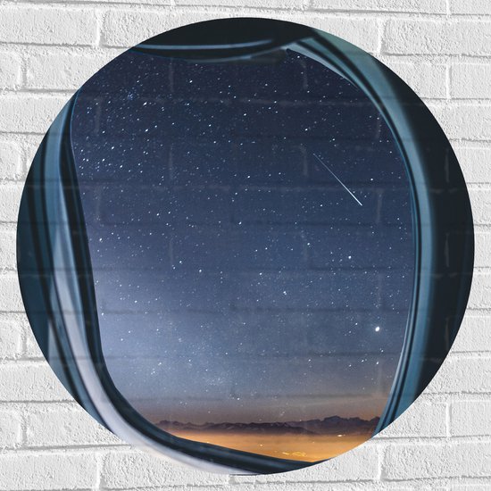 WallClassics - Muursticker Cercle - Fenêtre d'Avion avec Vue sur Ciel Étoilé et Montagnes - 80x80 cm Photo sur Muursticker