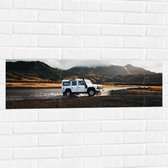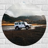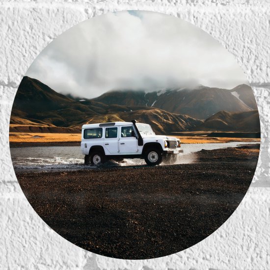 WallClassics - Muursticker Cercle - Grande Voiture Witte à Travers l' Water dans le Paysage de Montagne - 20x20 cm Photo sur Muursticker