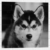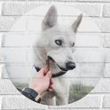 WallClassics - Muursticker Cercle - Husky Witte mordant une branche - Photo 50x50 cm sur Muursticker