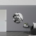 WallClassics - Muursticker Cercle - Lion Couché en Wit - 100x100 cm Photo sur Muursticker