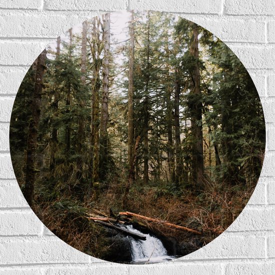 WallClassics - Muursticker Cercle - Petite Cascade Nature dans la Forêt - 70x70 cm Photo sur Muursticker