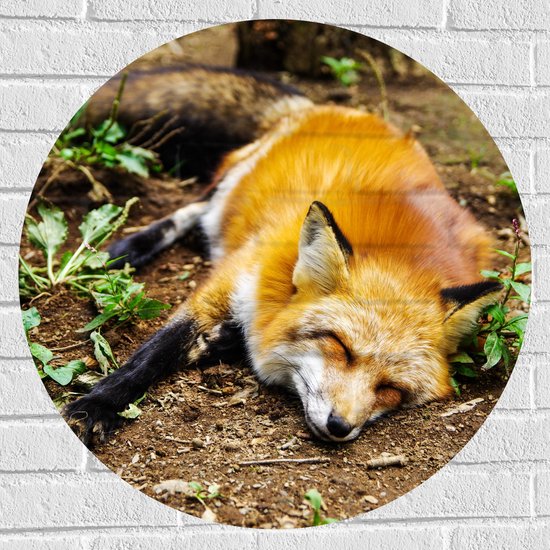 WallClassics - Muursticker Cercle - Renard Endormi - 70x70 cm Photo sur Muursticker