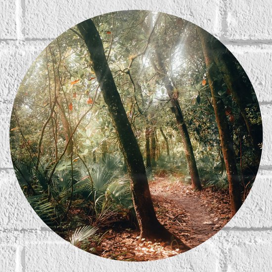 WallClassics - Muursticker Muursticker rond - Chemin forestier dans une forêt tropicale - Photo 30x30 cm