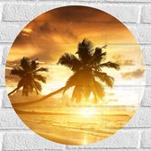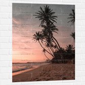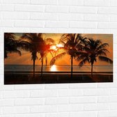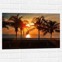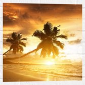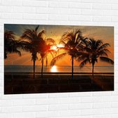 WallClassics - Muursticker - Palmiers sur la plage au coucher du soleil - 75x50 cm Photo sur Muursticker