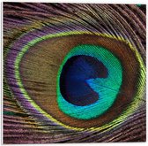 WallClassics - Panneau de mousse PVC - Gros plan de plume de paon - Photo 50x50 cm sur panneau de mousse PVC