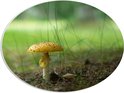 WallClassics - Panneau de mousse PVC ovale - Champignon jaune avec brins d'herbe - 56x42 cm Photo sur ovale (avec système de suspension)
