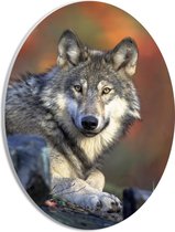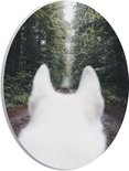 WallClassics - Panneau de mousse PVC ovale - Dos de chien Witte dans la forêt - 21x28 cm Photo sur ovale (avec système d'accrochage)