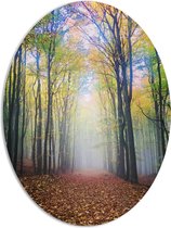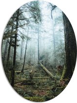 WallClassics - Panneau de mousse PVC ovale - Forêt brumeuse - 96x72 cm Photo sur ovale (avec système de suspension)