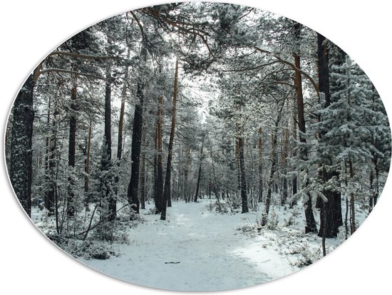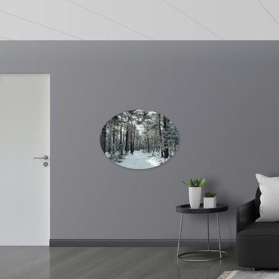 WallClassics - Panneau de mousse PVC ovale - Forêt d'hiver - 96x72 cm Photo sur ovale (avec système de suspension)