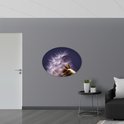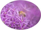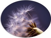 WallClassics - Panneau de mousse PVC ovale - Pissenlit sur fond violet - 108x81 cm Photo sur ovale (avec système de suspension)
