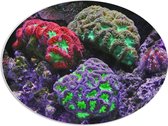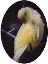 WallClassics - Panneau de mousse PVC ovale - Ressorts d'un perroquet coloré - 80x60 cm Photo sur ovale (avec système d'accrochage)