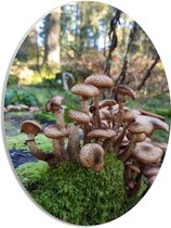 WallClassics - Panneau de mousse PVC ovale - Tas de champignons bruns sur mousse - 60x80 cm Photo sur ovale (avec système de suspension)