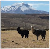 WallClassics - Panneau de mousse PVC - Lamas dans un paysage de montagne - Photo 50x50 cm sur panneau de mousse PVC