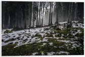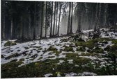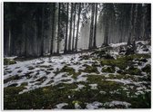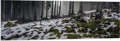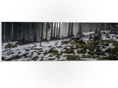 WallClassics - Panneau en mousse PVC – Arbres étroits dans la forêt avec de petits morceaux de neige – Photo 120 x 40 cm sur panneau en mousse PVC