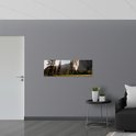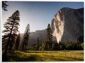 WallClassics - Panneau en mousse PVC - Champ ouvert et forêt le long d'une très haute Berg - Photo 120x40 cm sur panneau en mousse PVC