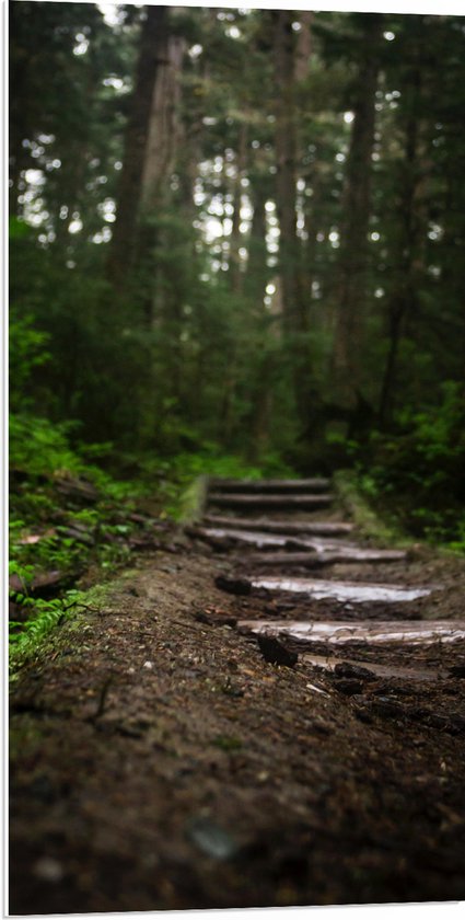 WallClassics - Panneau en mousse PVC - Chemin en carreaux de pierre à travers la forêt - Photo 50x100 cm sur panneau en mousse PVC (avec système de suspension)