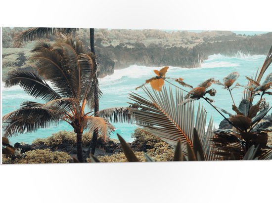 WallClassics - Panneau en mousse PVC - Grands Palmiers avec Plantes au bord de l' Water - Photo 100x50 cm sur panneau en mousse PVC