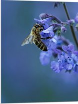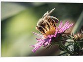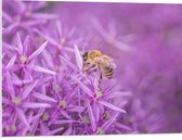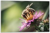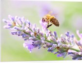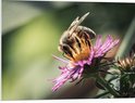WallClassics - Panneau en mousse PVC – Guêpe sur Bloem violette avec branche verte – 80 x 60 cm Photo sur panneau en mousse PVC