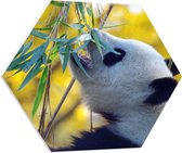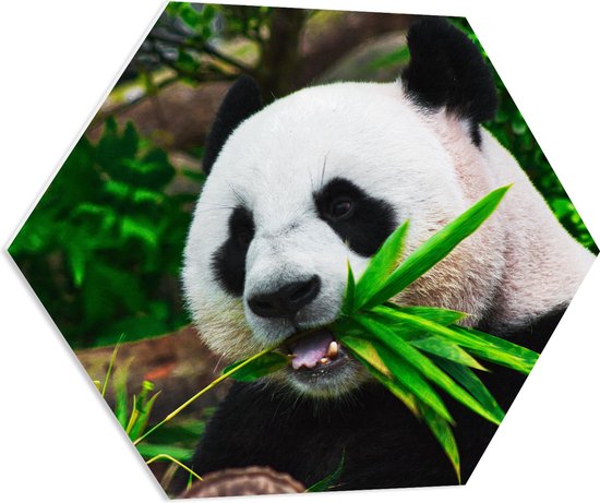 WallClassics - Panneau en mousse PVC hexagonal - Panda mangeant des feuilles de Bamboe - Photo 70 x 60,9 cm sur hexagone (avec système de suspension)