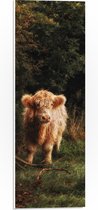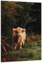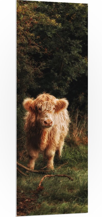 WallClassics - Panneau en mousse PVC – Highlander écossais marron moelleux dans une forêt envahie – 50 x 150 cm Photo sur panneau en mousse PVC (avec système de suspension)