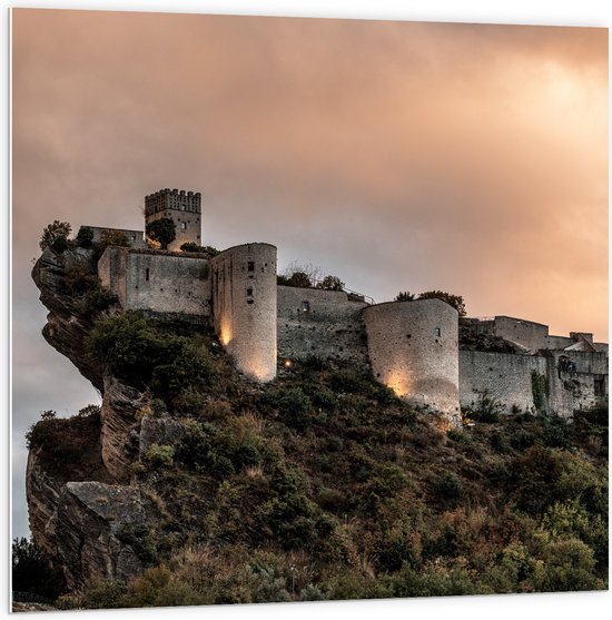 WallClassics - Panneau en mousse PVC - Kasteel sur une Berg - 100x100 cm Photo sur panneau en mousse PVC