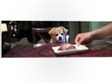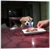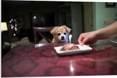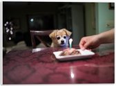 WallClassics - Panneau en mousse PVC - Klein chien d'anniversaire assis sur une chaise à la table à manger - Photo 60 x 20 cm sur panneau en mousse PVC (avec système de suspension)