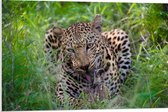 WallClassics - Panneau en mousse PVC – Léopard de chasse pour une clôture – Photo 90 x 60 cm sur panneau en mousse PVC
