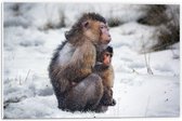 WallClassics - Panneau en mousse PVC – Mère Singe avec bébé dans la neige – Photo 40 x 30 cm sur panneau en mousse PVC