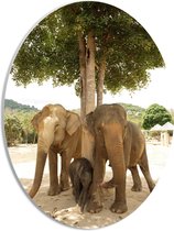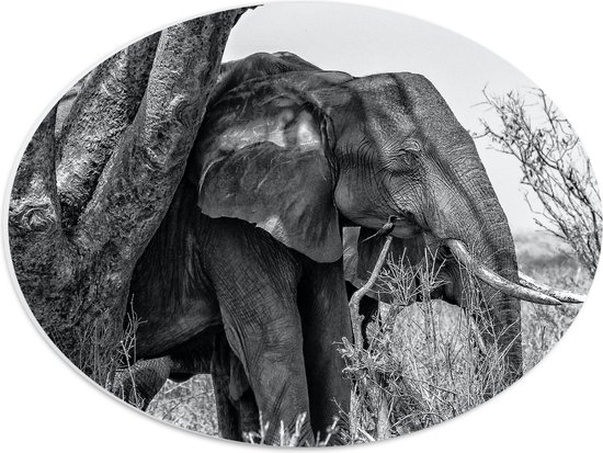 WallClassics - Panneau en mousse PVC ovale - Éléphant à l'ombre d'un arbre - Photo 40 x 30 cm sur ovale (avec système de suspension)