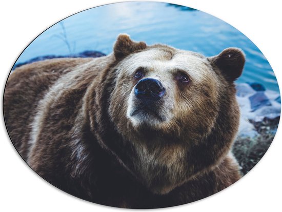 WallClassics - Photo ovale Dibond - Ours brun Bange - 80 x 60 cm (avec système de suspension)
