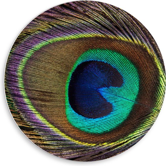 WallClassics - Plaque de Mousse PVC Cercle Mural - Oeil sur Plume de Paon - 50x50 cm Photo sur Cercle Mural (avec système d'accrochage)