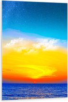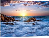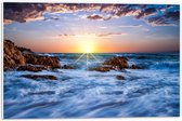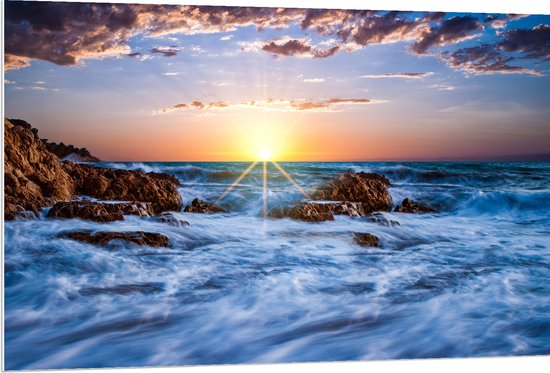 WallClassics - Plaque de Mousse PVC - Coucher de Soleil aux Couleurs Vives Derrière la Mer Sauvage - Photo 120x80 cm sur Plaque de Mousse PVC (Avec Système d'accrochage)