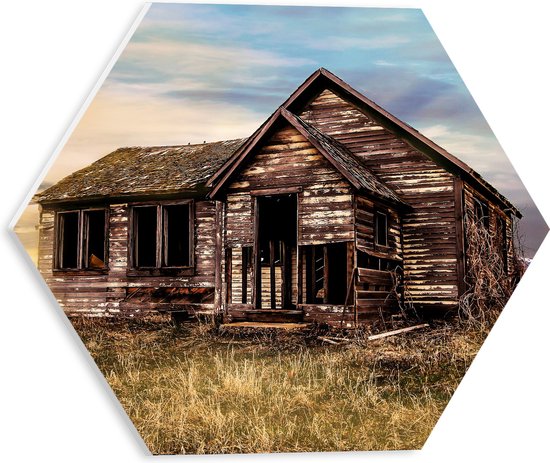 WallClassics - Plaque de Mousse PVC Hexagone - Ancienne Ferme dans le Pâturage - 30x26,1 cm Photo sur Hexagone (Avec Système d'accrochage)