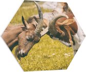 WallClassics - Panneau de mousse PVC Hexagone - Couple de chèvres courbées - Photo 80 x 69,6 cm sur hexagone (avec système de suspension)