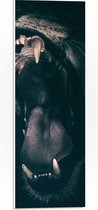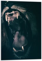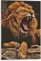 WallClassics - Plaque de Mousse PVC - Lion Dangereux avec la Bouche Ouverte - 90x60 cm Photo sur Plaque de Mousse PVC