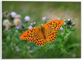 WallClassics - Plaque de Mousse PVC - Oranje avec Papillon Noir - Photo 30x40 cm sur Plaque de Mousse PVC (Avec Système d'accrochage)