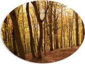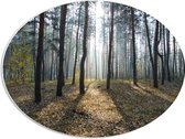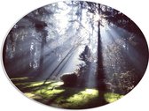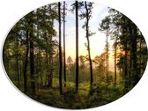 WallClassics - Panneau de mousse PVC ovale - Soleil brillant à travers les Arbres - 56x42 cm Photo sur ovale (avec système de suspension)