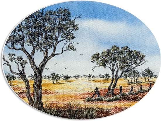 WallClassics - Plaque de Mousse PVC Ovale - Dessin d' Arbres avec Vogeks - 56x42 cm Photo sur Ovale (Avec Système d'accrochage)