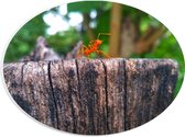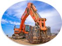 WallClassics - Plaque de Mousse PVC Ovale - Excavatrice Orange Vif sur Sable Plain - 28x21 cm Photo sur Ovale (Avec Système d'accrochage)