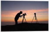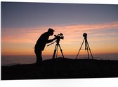 WallClassics - Plaque de Mousse PVC - Silhouette de Photographe à l'Océan - Photo 75x50 cm sur Plaque de Mousse PVC (Avec Système d'accrochage)