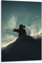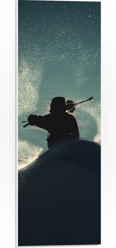 WallClassics - Plaque de Mousse PVC - Silhouette de Skieur dans Paysage - Photo 20x60 cm sur Plaque de Mousse PVC