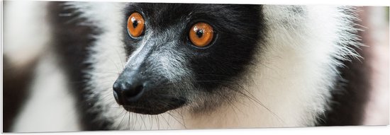WallClassics - Plaque de Mousse PVC - Singe Vari aux Yeux Marrons Gros Plan - Photo 150x50 cm sur Plaque de Mousse PVC (Avec Système d'accrochage)